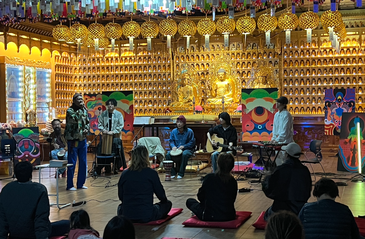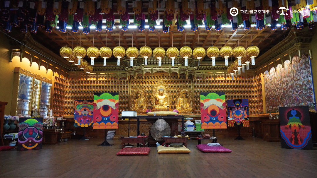 전시 마지막날은 서울빙기잔치 크루가 와서 축하를 해주셨습니다. 시치 작가님 또한 서울빙기잔치의 크루의 일원이라 더욱 함께 즐겼는데요. 윈디시티의 김반장님도 같은 크루더라고요. 저도 공연은 처음보았는데 신났답니다! 법당 안에서 아이들이 노래를 부르고 앞으로 다가왔으면 하는 평화에 대해 노래를 했어요 :) 모두모두, 무탈한 평안을 이곳에서 빌었답니다. 그리고, 작품 사진은 이인현 작가님이 찍어주셨어요. |