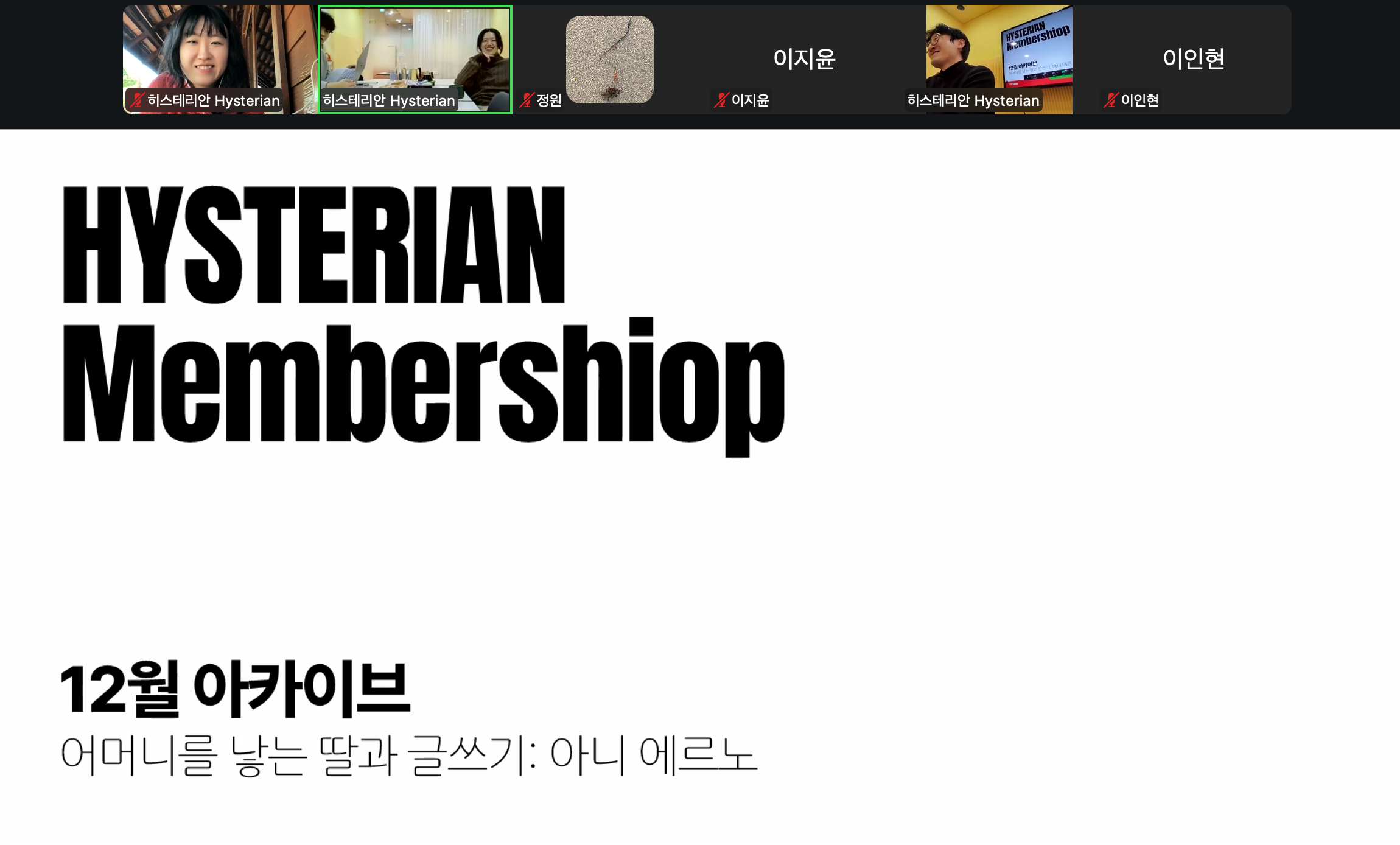 히스테리안을 운영하는 민주는 인도를 다녀왔고 저는 현재 치앙마이에서 부유합니다. 내년 히스테리안은 어떤 이야기를 만나게 될까 궁금해집니다. 편집자 병우 님이 히스테리안의 살림을 꾸리고 있기에 가능한 일이었습니다. 2026년 히스테리안의 「숨은신」 프로젝트에도 많은 관심과 응원을 부탁드립니다.