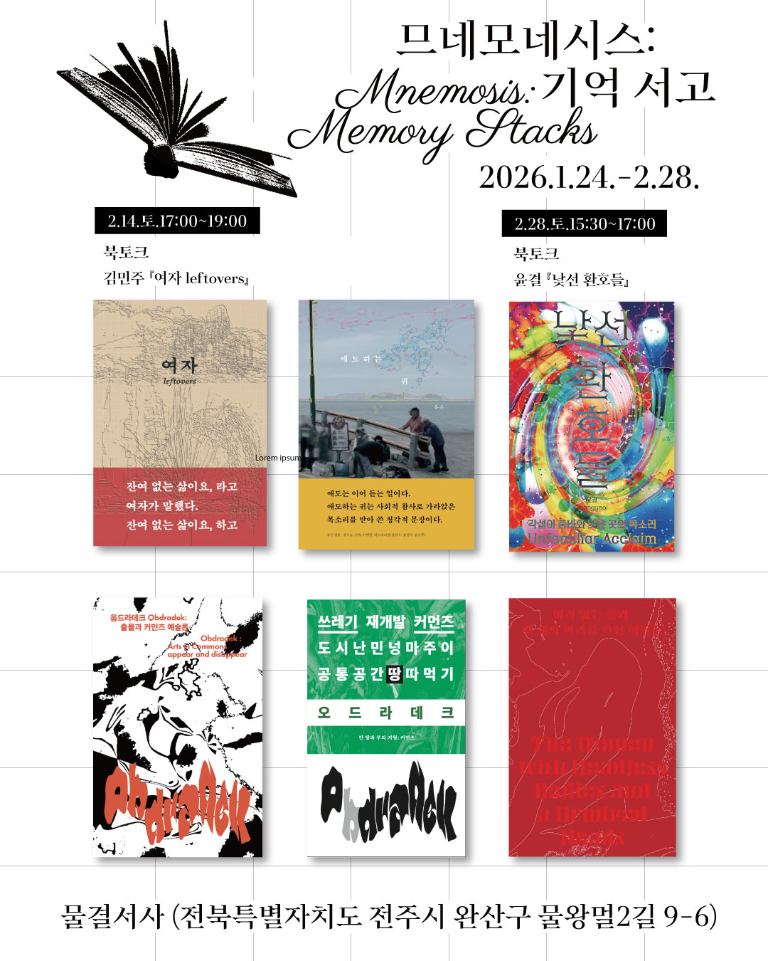 2026년의 첫 전시 <므네모네시스: 기억 서고>가 전주 물결서사에서 열립니다. 이번 전시는 책과 책을 잇는다는 컨셉으로 기획했어요. 작년, 히스테리안을 소개할 때 가장 큰 키워드는 '독자'였습니다. 독자에서 저자로 이행하는 글쓰기 ㅡ 독자의 자리에서 시작했기에, 이번 전시 또한 독자로서 전시를 열고 싶었습니다. 히스테리안은 다양한 기획과 출판, 일들을 진행하고 있어요. 생계를 위한 기획, 작가의 작업을 이해하여 연결하는 기획과 클라이언트 업을 통해 단체를 만들어 가고 있죠. 그리고 틈틈히 나를 위한 취미독서도 있어야하기에 ㅡ 이러한 맥락을 관통하는 주제어는 저희가 길을 잃지 않는 방향을 제안해줍니다. 히스테리안의 주제어는 비틀년, 숨탄것, 숨은신으로 구성되며 비틀년(2017~2021)은 여성주의의 맥락으로 몸, 언어, 퀴어, 신화 등으로 엮을 수 있고 숨탄것(2022~2023)은 사물, 객체, 환경, 커먼즈의 맥락에서 다뤘어요. 그리고 현재 숨은O(2024~)은 한국, 미의식, 전통, 영성에 관한 리서치를 하고 있습니다. 이런 맥락에서 저희에게 언제나 영감이 되어주는 것은 언제나 '책'인데요. 이번 전시는 영감을 소개하는 자리로 '도서관'의 컨셉을 가져왔어요. 저희가 그동안 참고했던 자료를 소개하는 작업은 물론 책의 문장과 생각을 나누는 코멘트를 온라인에 남길 수 있도록 했습니다. 전주 물결서사에서 소개한 작업을 서울 은평구에 위치한 공공도서관인 구산동도서관마을에서 선보일 수 있게 되었어요. 서로의 레퍼런스가 공유하는 '도서관' 어떻게 쌓아나갈지 궁금해요. 이 모든 레퍼런스는 이와이 슌지의 러브레터의 도서카드... 😌 이지윤 디자이너의 실력이 함께했습니다. 포스터 디자인은 파이카의 이수향 디자이너, 최고 >_< |