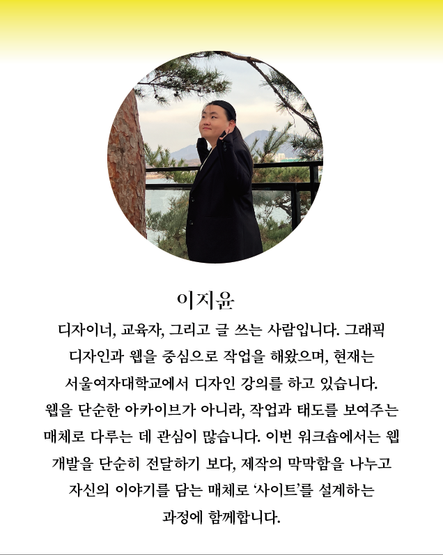 겨울 내 준비한 <워킹클럽>은 이지윤 디자이너와 최영건 작가님과 함께합니다. 이지윤 디자이너는 히스테리안의 웹 사이트와 디자인 아이덴티티를 개발했으며, '무늬만 거짓말'이라는 발칙한 산문 연재를 발표한 바 있습니다. 글을 쓴다는 점에서 무엇보다 텍스트-출판이 가진 프로세스를 빠르게 이해하며, 다양한 범주로 활동하는 창작자의 니즈와 고민을 잘 알고 있습니다. 이번 포트폴리오 또한 파편적으로 나열된 포트폴리오를 소개하는 사이트를 제작하는 일을 제안드립니다. 그 이유는 오랫동안 저희 또한 윅스로 홈페이지를 진행해왔어요. 윅스를 보이콧하고 싶었으나 ㅠㅠ 대안이 없어 고민되었습니다. 저희의 경우는 결제와 멤버십(공개/비공개)가 나뉘어지다보니 꽤 까다로웠거든요. 오픈 사이트기보다 창작 저작권 보호와 아카이브 등이 함께하다보니 복합적이었습니다. 이 과정에서 이지윤 디자이너가 A-Z까지 직접 사이트를 개발했어요. 그렇게 윅스의 높은 수수료를 안녕하게 되었지요. 여전히 지금도 홈페이지를 만들어가지만, 지윤 디자이너와 함께라 불안하지 않습니다.