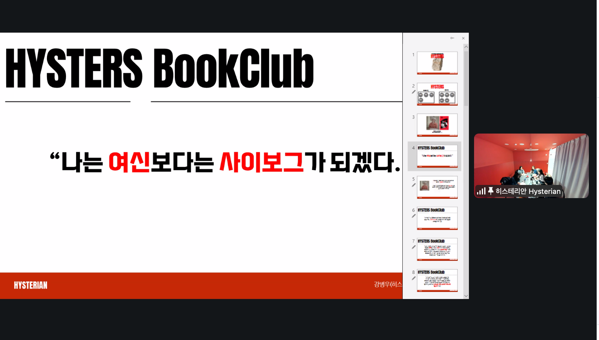 2월 해러웨이 '사이보그 선언'을 읽었습니다. 해러웨이 사이보그 선언을 통해 정체성, 기술 및 사회를 이해하는 데 미치는 영향에 대한 토론에 중점을 두었습니다. 사이보그 이론, 포스트휴머니즘, 그리고 기술과 인간 경험의 교차점을 탐구했고, 오늘날 성별, 인종, 계급과 관련하여 정체성에 대한 전통적인 개념에 어떻게 도전하는지 살펴 보았습니다. 오늘날, AI와 기술이 인간 사회에 미치는 영향을 고려하여 빠르게 변화하는 세계에서 새로운 연합/공동체의 방향에 대한 아이디어를 나누었습니다! 끝나고 맛있게 쭈꾸미도 먹었답니다. 3월에 만나요 |