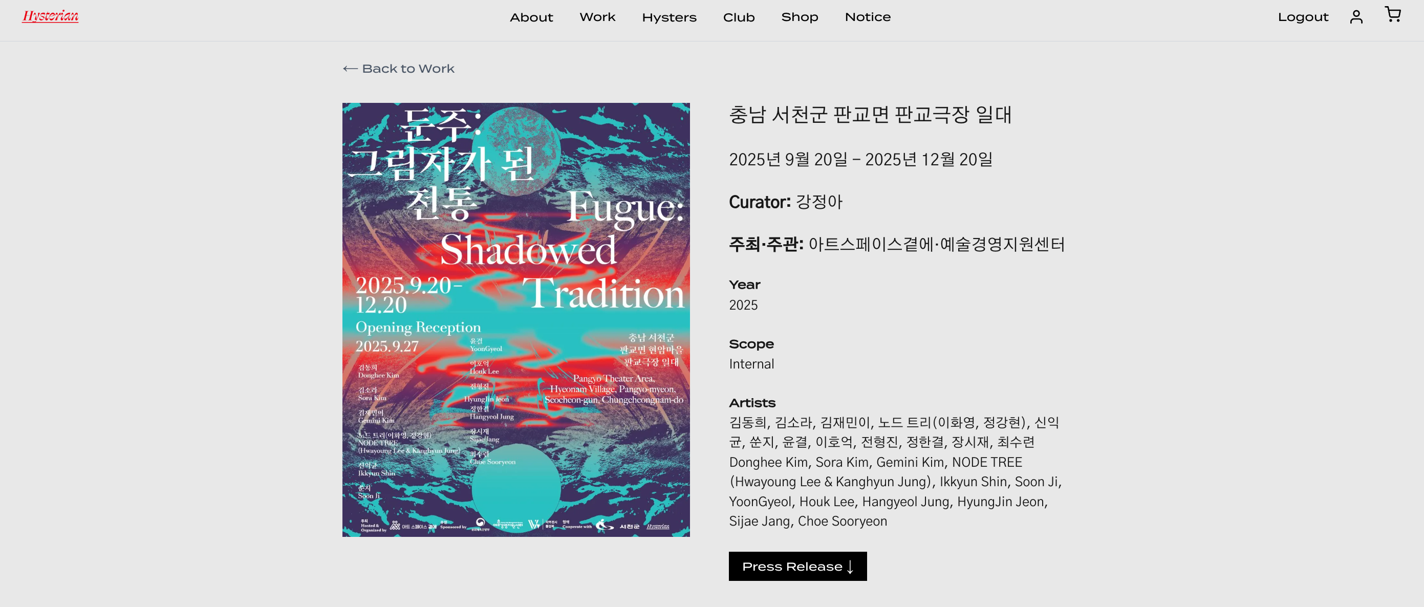 2025년 수원에 위치한 아티스트 레지던시 푸른지대에서 최가영 작가의 비평을 매칭하여 작업론에 관련한 글을 기고한 바 있습니다. 최가영 작가은 심도깊은 리서치와 필드 트립으로 보이는 것과 보이지 않는 세계의 면면을 회화와 영상, 설치, 텍스트 등 다양한 리서치 레이어를 선보이셨는데요. 최근, '통조림'의 이동 궤적을 동북아시아의 역사로 연결해 온 이야기를 확장하고 있습니다. 지난해, 작가님의 작업과 공명하여, 올해 히스테리안도 만주 트립을 준비하고 있습니다. 가영 작가님과 이야기하면서 인상 깊었던 리서치 방법론은 특정한 장소에서 필연적으로 만나게 되는 인물과 그로 인해 일어나는 '사건'과 작가 개인의 가족사를 경유하여 공저로 참여할 오은정 인류학자와 함께, 섬세하게 책 작업이 진행될 예정입니다.